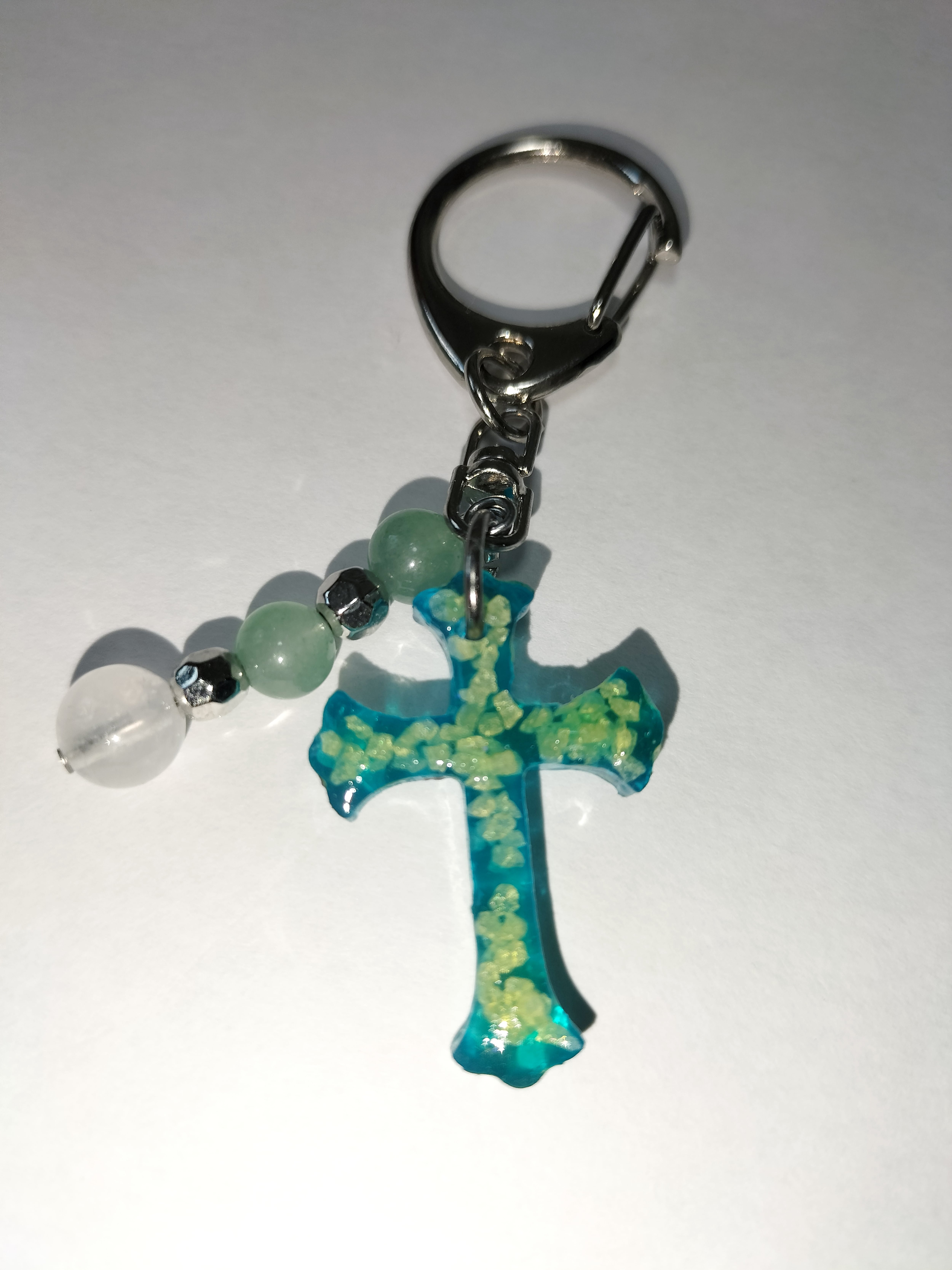 ■ 優雅さと癒しの融合!ホワイトジェイドとアベンチュリンの十字架レジンキーホルダー