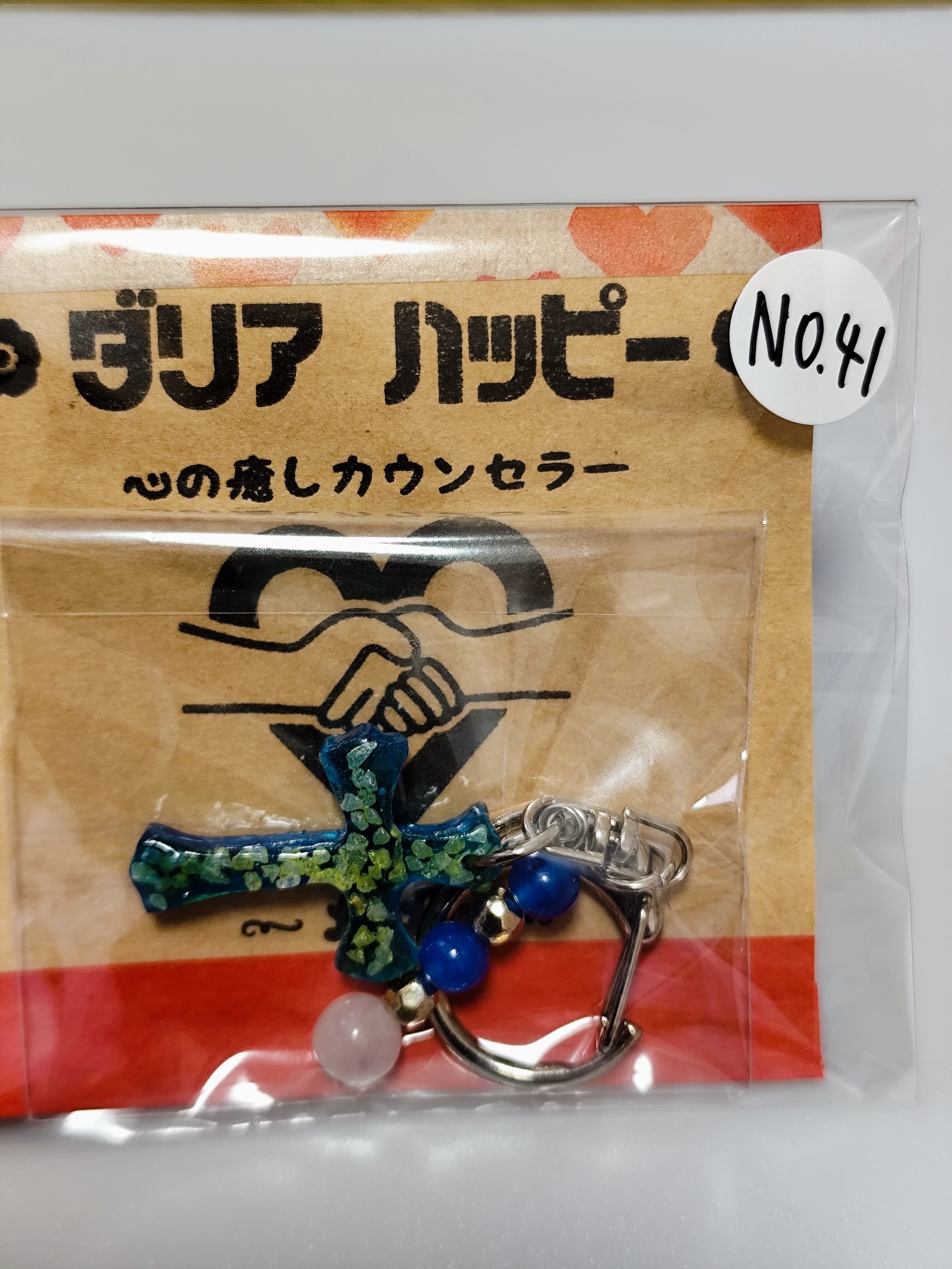 ダリアハッピーショップの『キーホルダー』は、ブルーアゲートとホワイトジェイドを使用した美しい十字架デザインのレジンアクセサリーです。深い青色と純白のコントラストが、持つ人の心に安らぎを与え、毎日を特別なものに引き立てます。ブルーアゲートは心を落ち着ける効果があり、持つことでリラックス感が得られると言われています!大切な方へのギフトとしても心温まるアイテムとなり、あなたの鍵やバッグに素敵なアクセントを加えてくれます。日常生活に彩りを添え、特別な瞬間を演出するお手伝いをします!