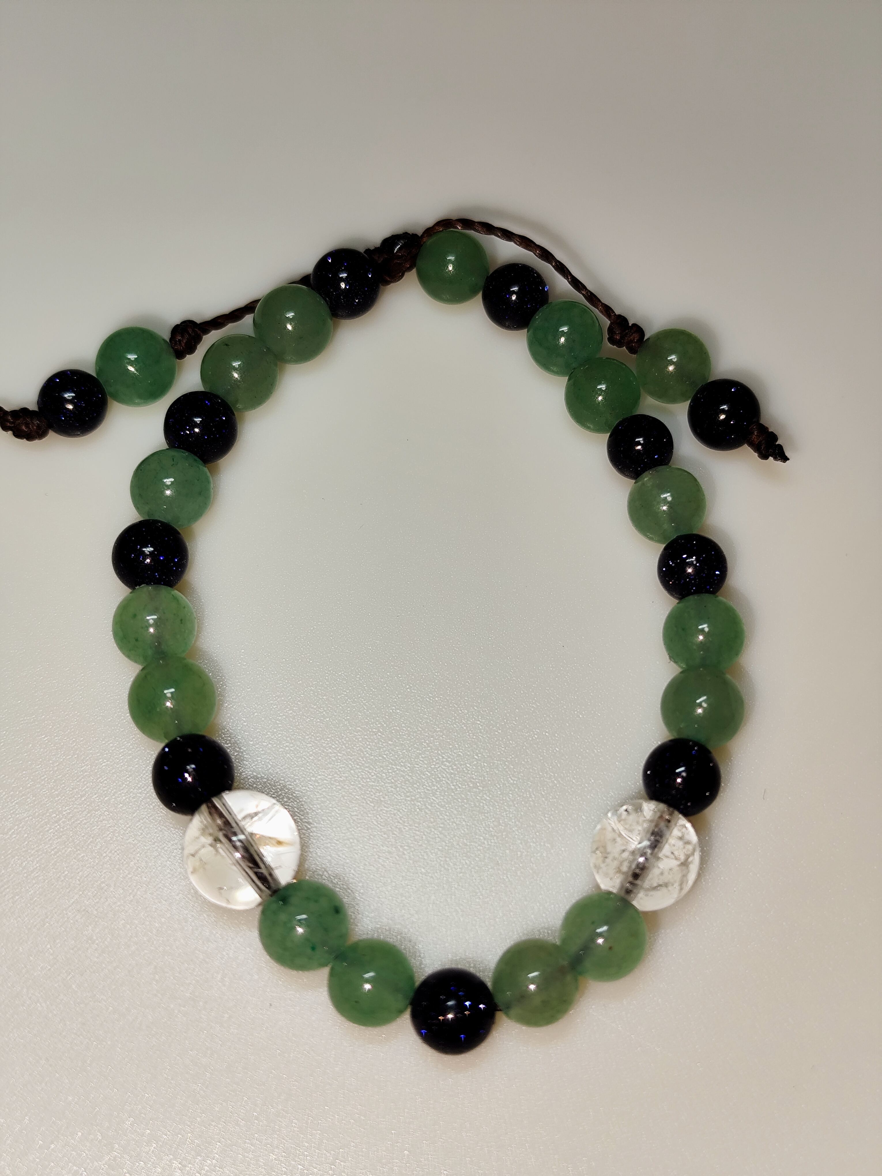 ■ おしゃれな紐タイプブレスレット!このアイテムは、心を込めて作られたデザインで、あなたのライフスタイルに特別なエネルギーを与えます。厳選されたブルーサンドストーン、アベンチュリン、クラック水晶が魅力的に組み合わされ、シンプルでありながら存在感のある仕上がりです。ブルーサンドストーンは心に深い安らぎをもたらし、アベンチュリンは健康運を引き寄せると言われています。そして、クラック水晶は浄化の力が強く、幸運を呼び込む効果があります。このブレスレットを身に着けることで、日常生活の中で素敵なエネルギーを感じることができるでしょう!