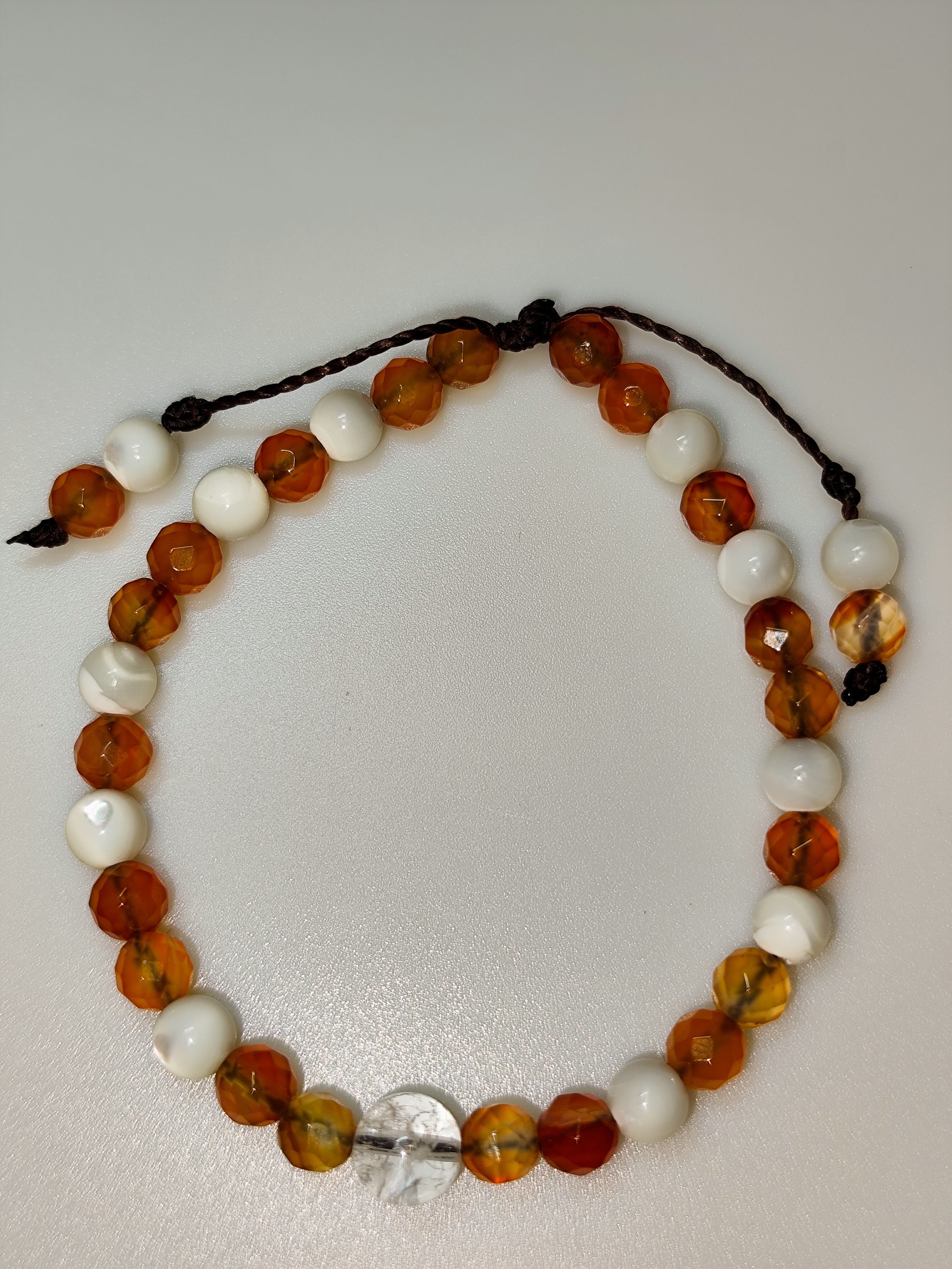 ■ おしゃれな紐タイプのブレスレット!このアイテムは、心を込めて作られたデザインで、あなたのライフスタイルに特別なエネルギーを与えます。厳選されたカットカーネリアン、マザー・オブ・パール、クラック水晶が魅力的に組み合わされ、シンプルでありながら存在感のある仕上がりです。カットカーネリアンは自信を高めると言われ、マザー・オブ・パールは家族の円満を促進します。そして、クラック水晶は強力な浄化作用を持っており、厄除けのパワーも兼ね備えています。このブレスレットを身に着けることで、日常生活の中で素敵なエネルギーを感じることができるでしょう!